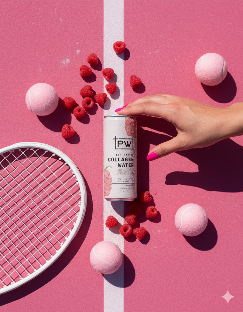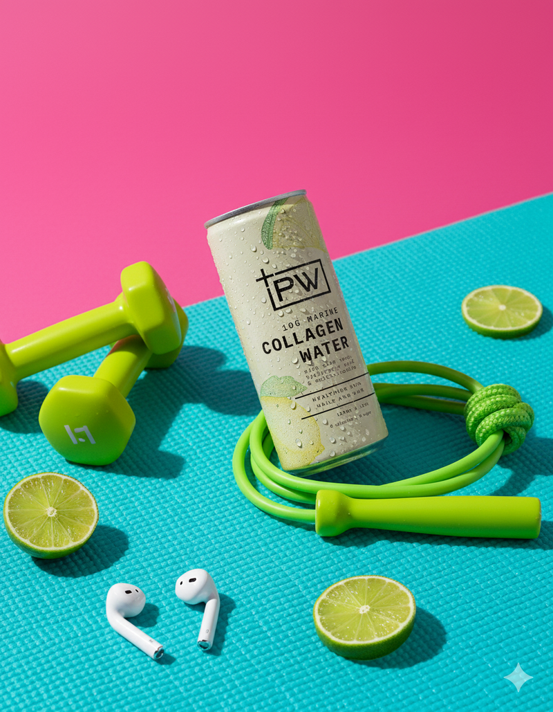 A light, functional drink made to support skin, nails, and hair, with no sugar, no calories, and no compromise. +PW Collagen Water delivers 10g of marine collagen, combined with hyaluronic acid, aloe vera, and multivitamins to help you glow from the inside out.